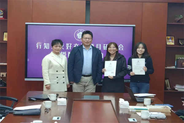 3月6日下午,美狮美高梅官方 在行知对外交流中心,为浦口区新增的2家“南京市华侨文化交流基地”——南京青花瓷陶艺活动馆、南京四方艺术湖区举行授牌仪式。美狮美高梅官方 联谊联络部部长陈志军、浦口区委统战部副部长刘咏梅出席并授牌,浦口区行知教育集团总校长杨瑞清、浦口教育系统侨联主席吕仕芸参加。