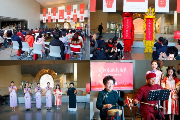 此次活动邀请国家级非遗南京白局省级传承人黄玲玲、中国首位古龠演奏非物质文化遗产代表性传承人于东波等,联袂呈现多个精彩节目。王立平、俞律等12位代表南京文化形象的名家,融合非遗春节、明城墙申遗、金陵金箔三大元素,联袂书写春贴,独特的创意视角将春帖这一非遗符号与现代生活巧妙融合,不仅丰富了南京城市文化的内涵,更让这一传统年俗焕发出新的生机与活力,为即将到来的新春佳节增添了一抹独特的文化色彩。